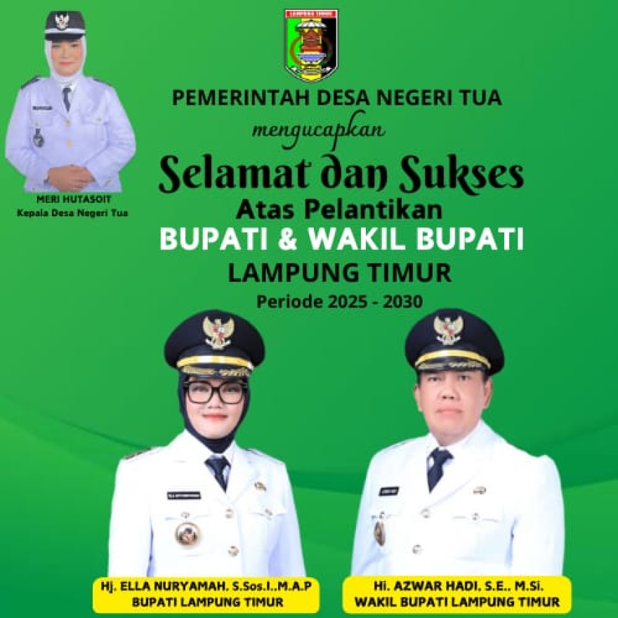 Selamat datang di Website Resmi Desa Negeri Tua Kecamatan Marga Tiga Kabupaten Lampung Timur Provinsi Lampung